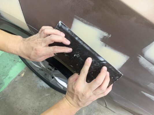 - The next step is applying putty to even out the surface.