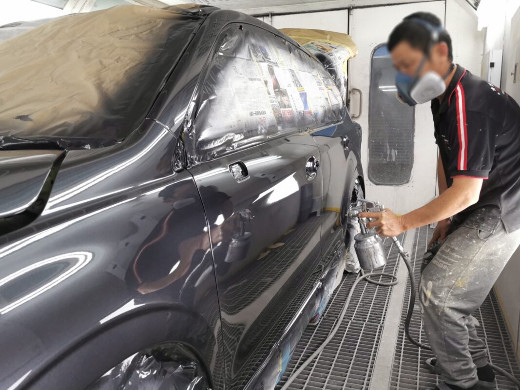 Day 6 Following up on the Subaru Forester which was in for a full spray painting. Our spray painting specialists completed the masterclass spraying job. The newly painted surface was then carefully examined by our craftsman for any blemishes, followed by multiple rounds of polishing to bring out the shine. Afterwards they expertly reinstall all previously removed car parts, bringing the vehicle back together seamlessly. We will reveal our final transformation in our next post.
