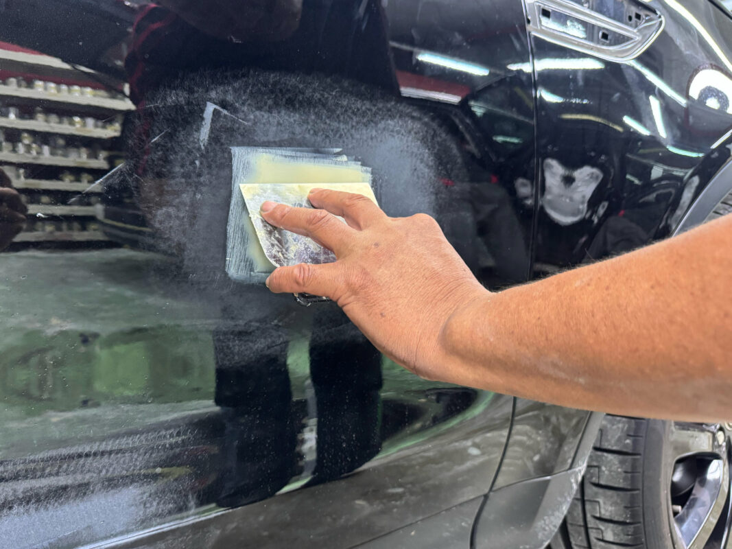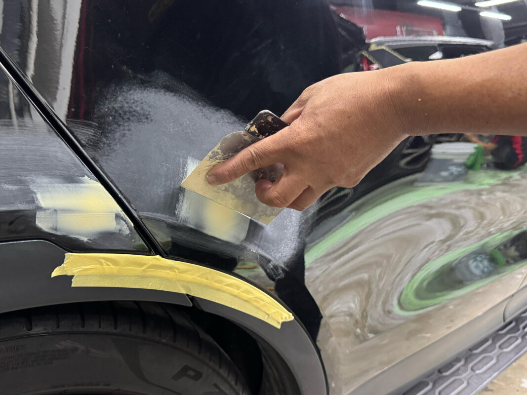 Our specialists thoroughly examine the car’s surface for paintwork imperfections, meticulously repairing and patching every flaw to ensure each detail is flawlessly restored before spray painting.