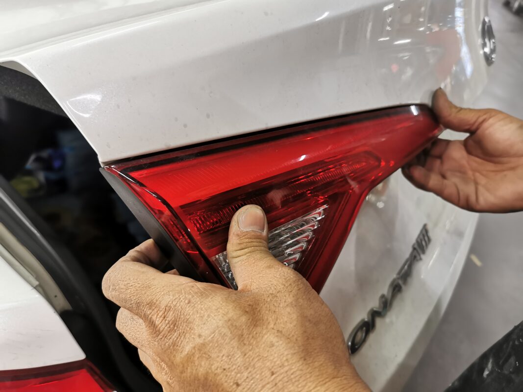 Day 2 Following up on the Hyundai LF Sonata which was in for a full spray painting, Our specialists got right to work on the car, carefully dismantling the necessary parts to get it ready for spray painting.
