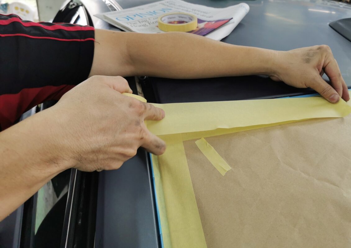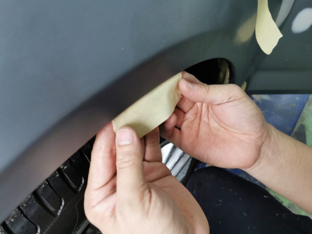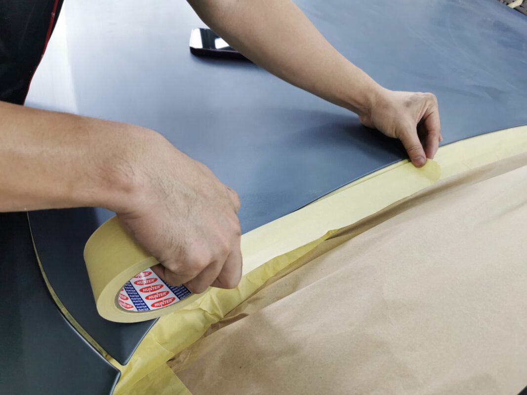 Day 5 Following up on the BMW 5 Series which was in for a full spray painting. Once the surface is perfectly smoothed and leveled, thorough masking process begins. This ensures that paint particles are precisely directed, preventing any unwanted areas from being affected during the spray painting process.