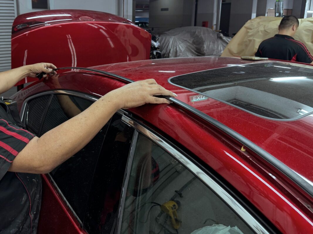 Day 2 Following up on the Mazda 3 which was in for a full spray painting, Our professional team of Spray Painting Masters meticulously dismantle all necessary parts before preparing for a full exterior spray painting.