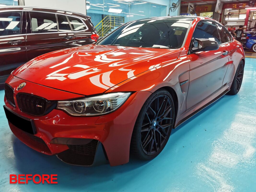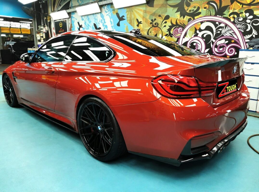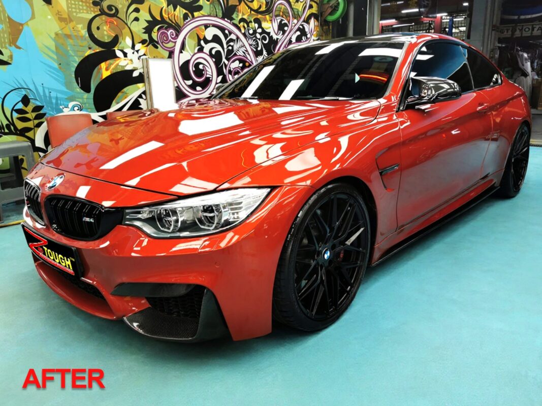 Day 7 Following up on the BMW M4 which was in for a full spray painting. Experience the spectacular transformation by Revol Carz Makeover! See how this once lackluster BMW M4 has turned flawlessly beautiful, now coated with ZeTough Titanium Paint Protection for a lasting, enriched finish. Enjoy the transformation photos!