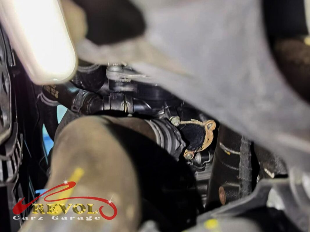 Our expert Volkswagen Technicians lifted the vehicle to perform a comprehensive inspection of the high-temperature issue.