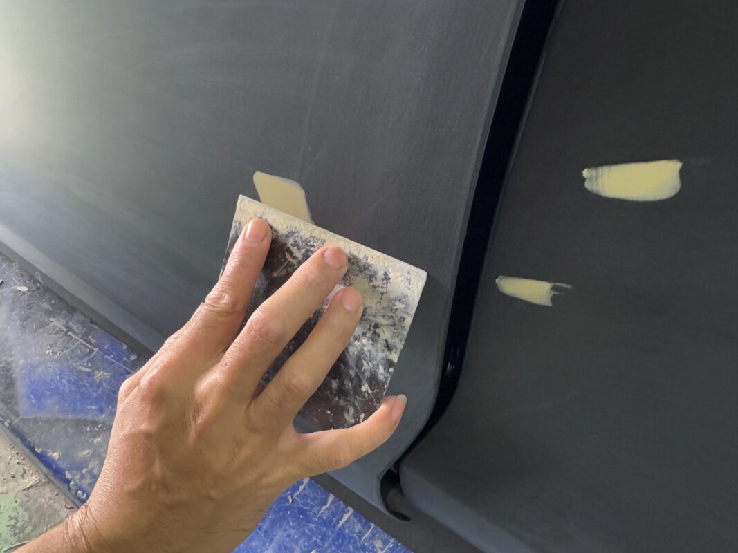 Day 3 Following up on the Porsche Taycan which was in for a full spray painting. Our Spray Painting Masters meticulously inspect every inch of the car’s surface for scratches and dents. Each imperfection is carefully repaired and patched, ensuring that even the smallest detail is restored to perfection before the spray painting process begins.