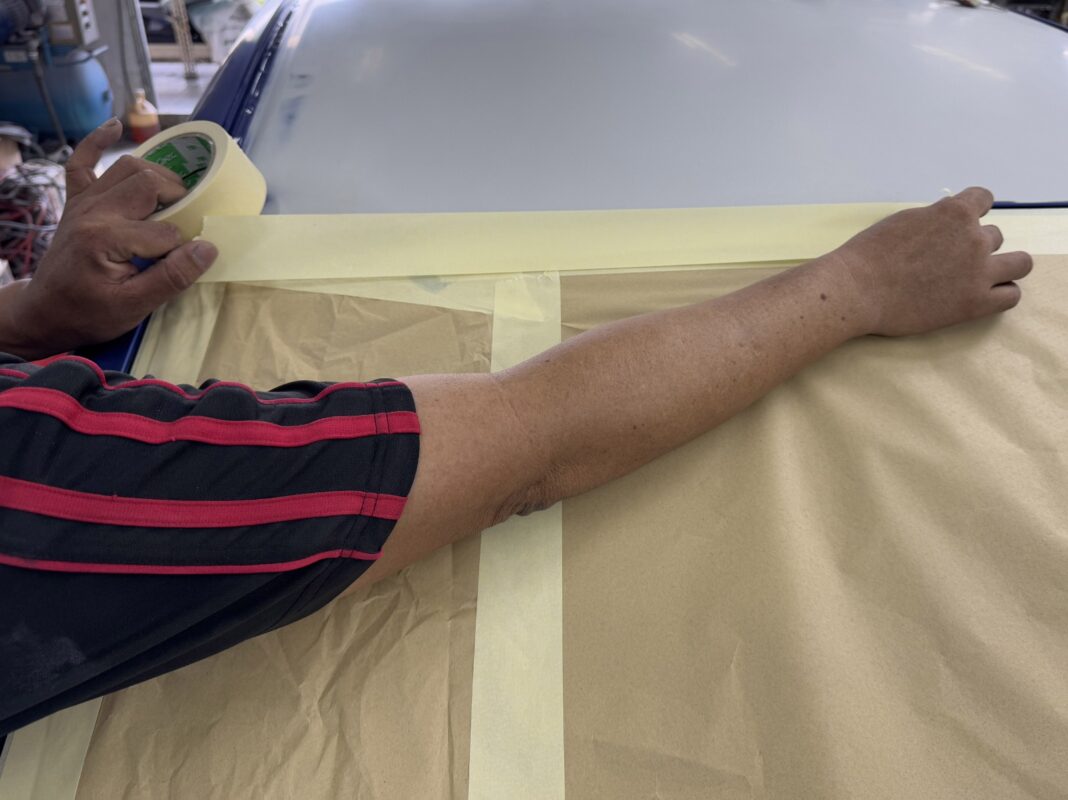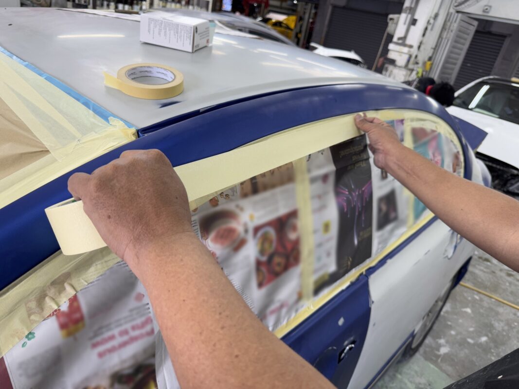 Day 5 Following up on the Honda Civic which was in for a full spray painting. To prevent overspray and ensure a flawless spray painting job, our Spray Painting Masters carefully mask off all non-painted surfaces. After completing all the prep work and ensuring the car is ready, it will be set for a masterclass spray painting session by our experts!