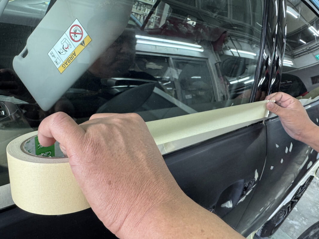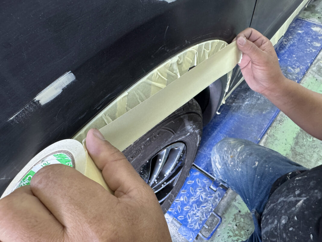 Our team prepared by masking all non-painted surfaces to ensure a perfect spray paint job. Once all prep work was done, the car was ready for masterclass spraying by our expert.