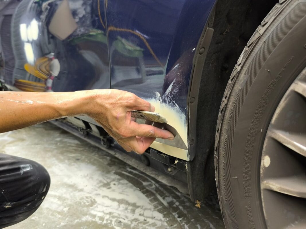 Day 3 Following up on the BMW 318I which was in for a full spray painting. Our team meticulously checked the car’s surface for paint imperfections, repaired, and patched any uneven areas, ensuring a smooth foundation before spray painting.