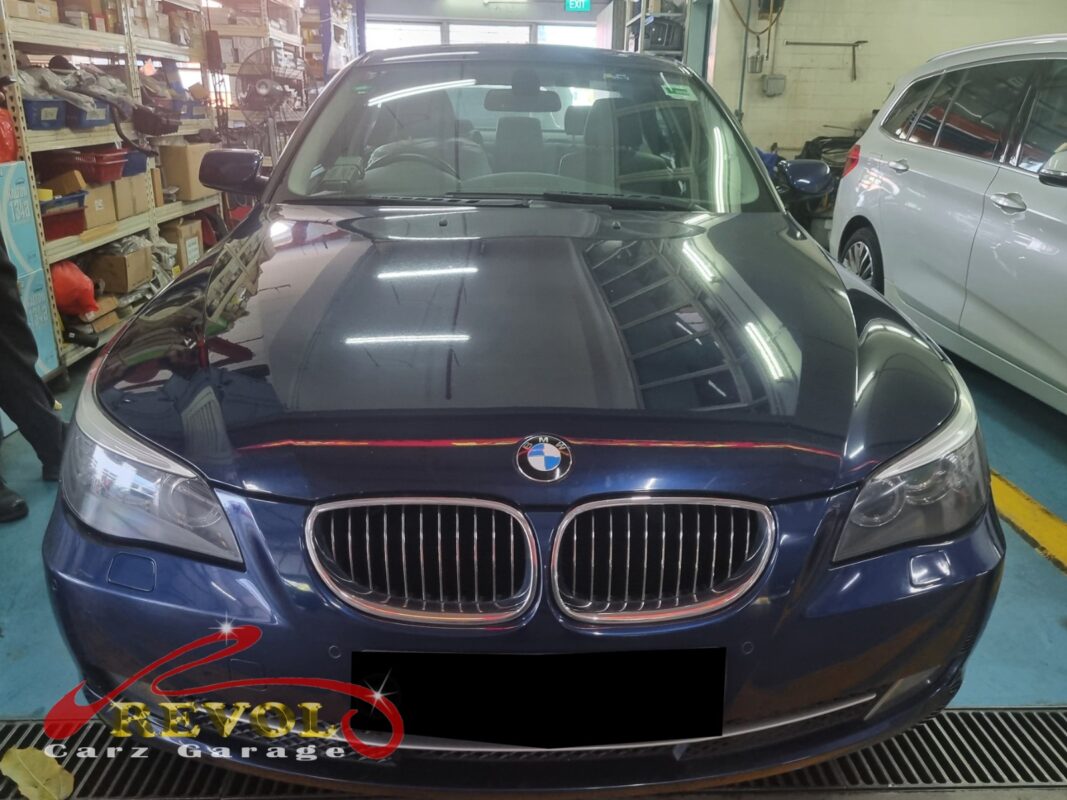 The BMW520i is ready for collection at Revol Carz Garage. The repair is completed in the fastest turnaround time and the BMW goes home with an after-repair guarantee.